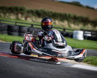 In 2025, he secured multiple podiums and a top-five finish in the Junior Kart Championship, before proudly representing the UK at the TB Kart World Finals in Paris, finishing inside the top ten against some of the best young drivers in the world.